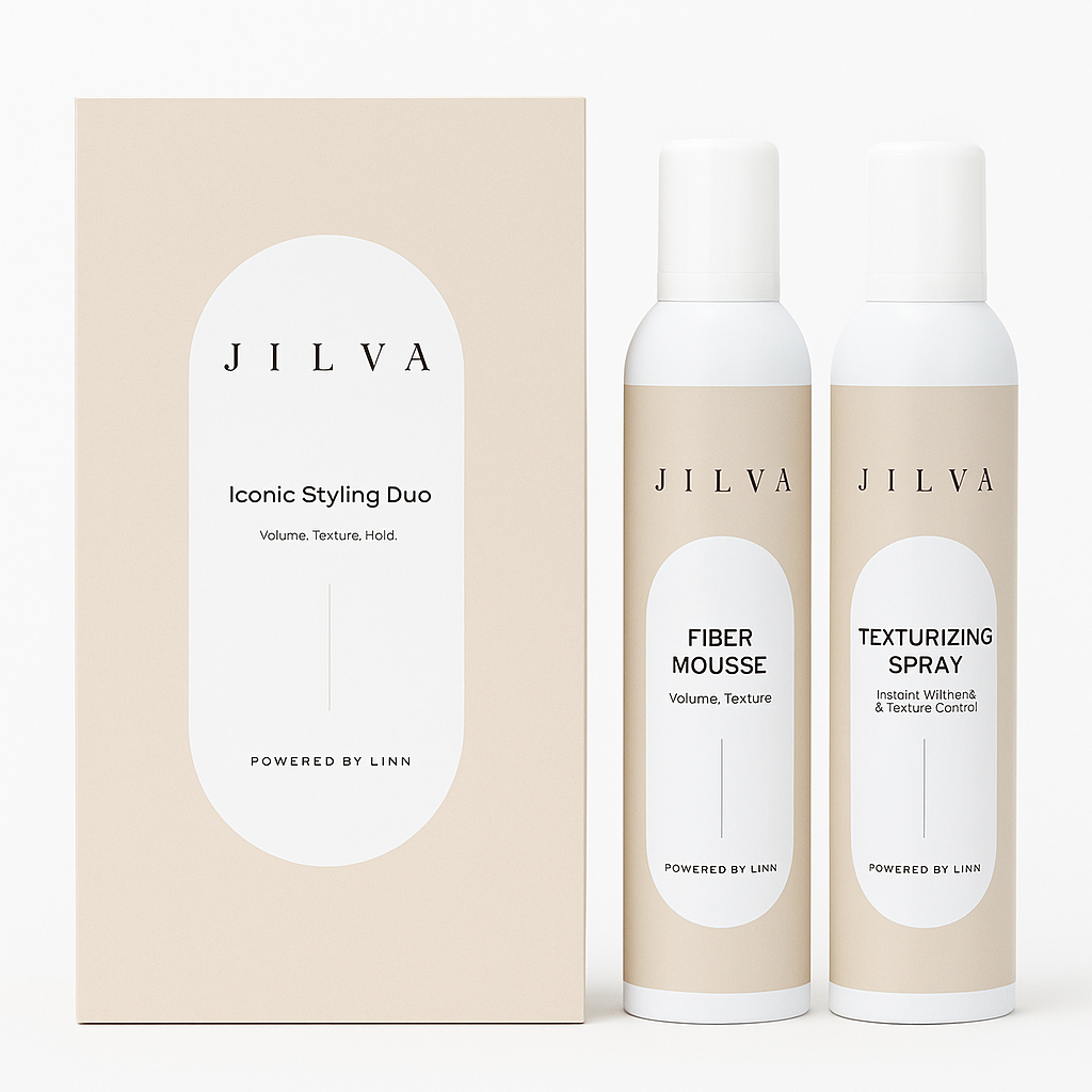 Het Jilva Iconic Styling Duo is dé combinatie voor moeiteloos volume, body en natuurlijke glans. De Jilva Fiber Mousse zorgt voor directe stevigheid, volume en luchtige aanzet, terwijl de Jilva Texturizing Spray het haar textuur, volume, grip en flexibiliteit geeft. Samen creëren ze de perfecte basis voor elke stijl. Van zachte beach waves tot een volle, glanzende blow-dry die de hele dag blijft zitten.