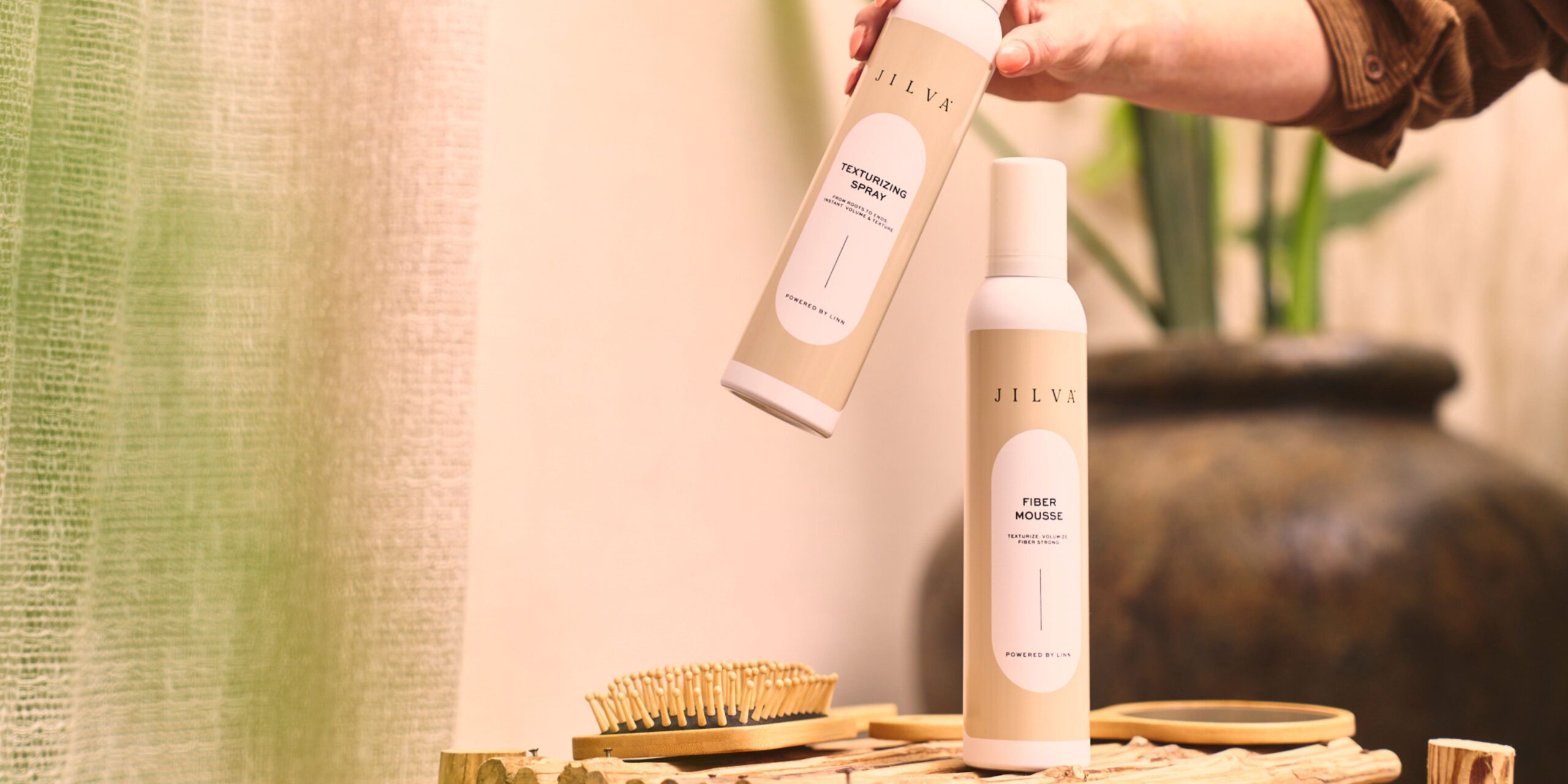 - Droog je haren met een föhn en spray daarna Jilva Texturizing Spray in je haren voor nog meer volume en textuur. Door dit product te gebruiken na de Jilva Fiber Mousse, ‘stapel’ je laagjes van stevigheid in je haren, zonder het te verzwaren. Tip: voor extra stevigheid mag je de Texturizing Spray ook in vochtig haar sprayen. Deze geeft dan extra hold, zonder dat je haar stug gaat aanvoelen.